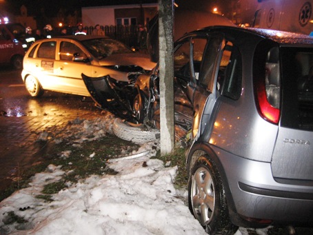W czwartek 15 lutego 2007 roku około godz. 20.30 doszło do wypadku w Latchorzewie przy ul. Hubala Dobrzańskiego (przy bramie wjazdowej na osiedle Latchorzew). W wypadku wzięły udział dwa srebrne Ople Corsa. Kierowca jednego z samochodów Opel Corsa nie zachował bezpieczeństwa ruchu drogowego i wyjechał z terenu osiedla prosto pod jadący ul. Hubala Dobrzańskiego inny samochód (również Opel Corsa). Świadkowie zeznają również o innym przebiegu tych zdarzeń. Więcej w tej sprawie dowiecie się na FORUM DYSKUSYJNYM W wyniku wypadku jeden z samochodów niemalże okręcił się na słupie energetycznym - kierowcę tego samochodu pogotowie ratunkowe zabrało do szpitala. Dwoje młodych osób z drugiego samochodu po opatrzeniu (skaleczona ręka) zostało zwolnionych do domu. Na miejscu spotkaliśmy karetkę Pogotowia Ratunkowego, Policję i Straż Pożarną APELUJEMY O ROZWAŻNĄ JAZDĘ. |